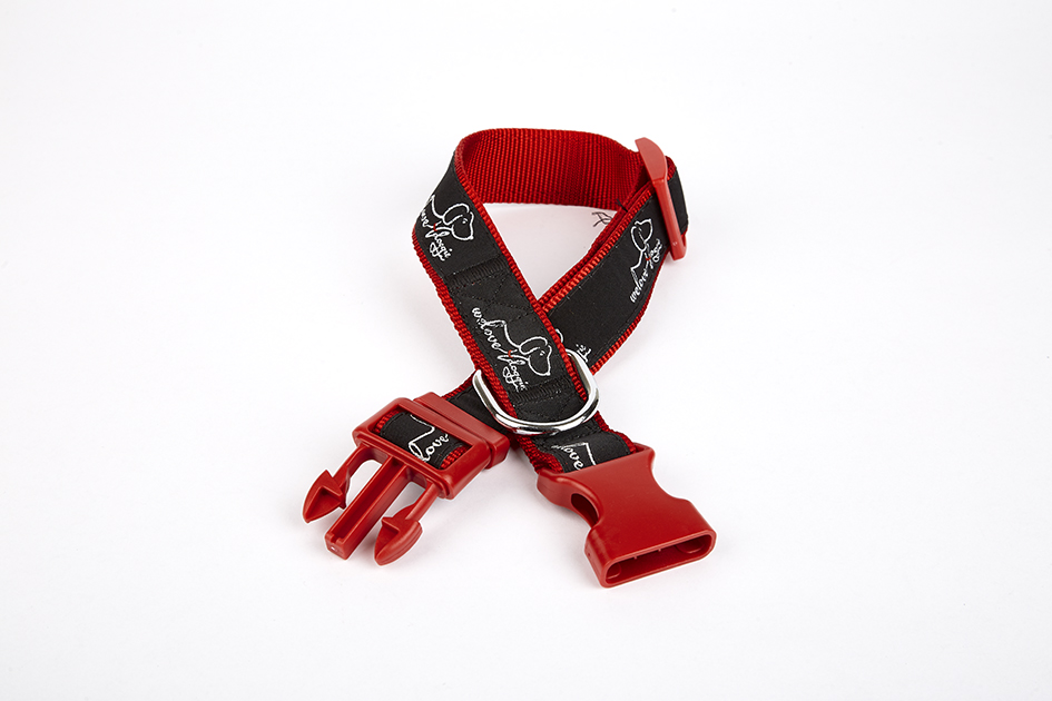 Doggie Desenli Süslü Dokuma Köpek Boyun Tasması 1,5 x 25-40 cm Kırmızı