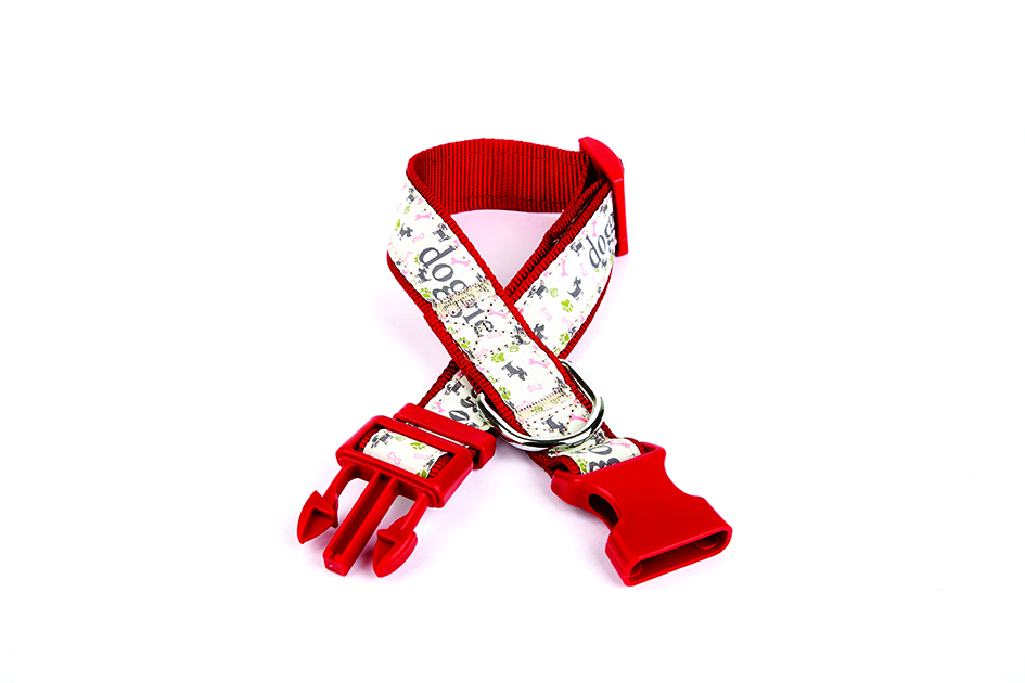 Doggie Desenli Süslü Dokuma Köpek Boyun Tasması 1,5 x 25-40 cm Kırmızı