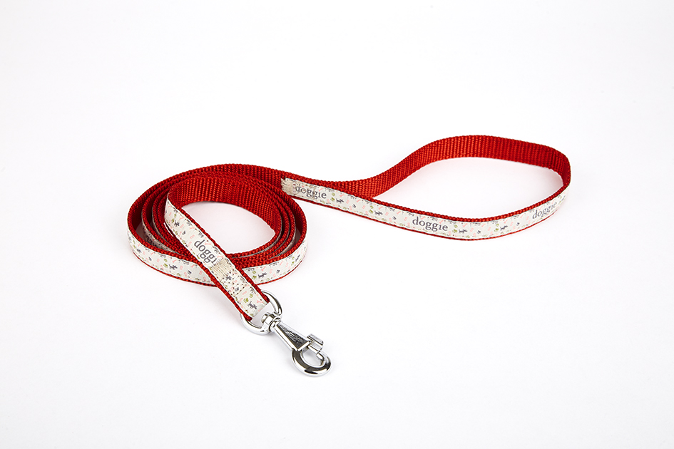 Doggie Desenli Süslü Dokuma Köpek Gezdirme Kayışı El Yapımı 1,5 x 160 cm Kırmızı