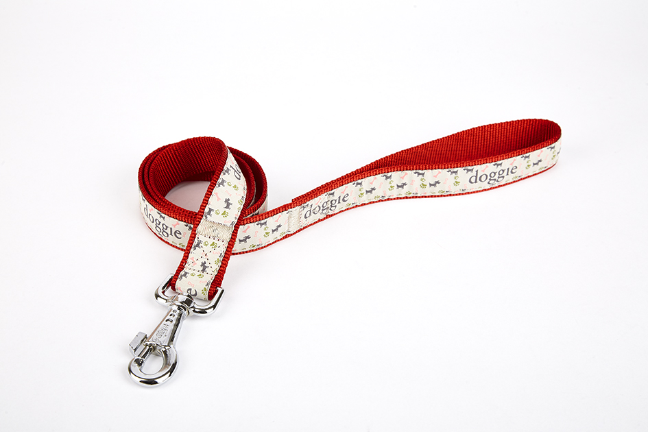 Doggie Desenli Süslü Dokuma Köpek Gezdirme Kayışı El Yapımı 2,5 x 120 cm Kırmızı