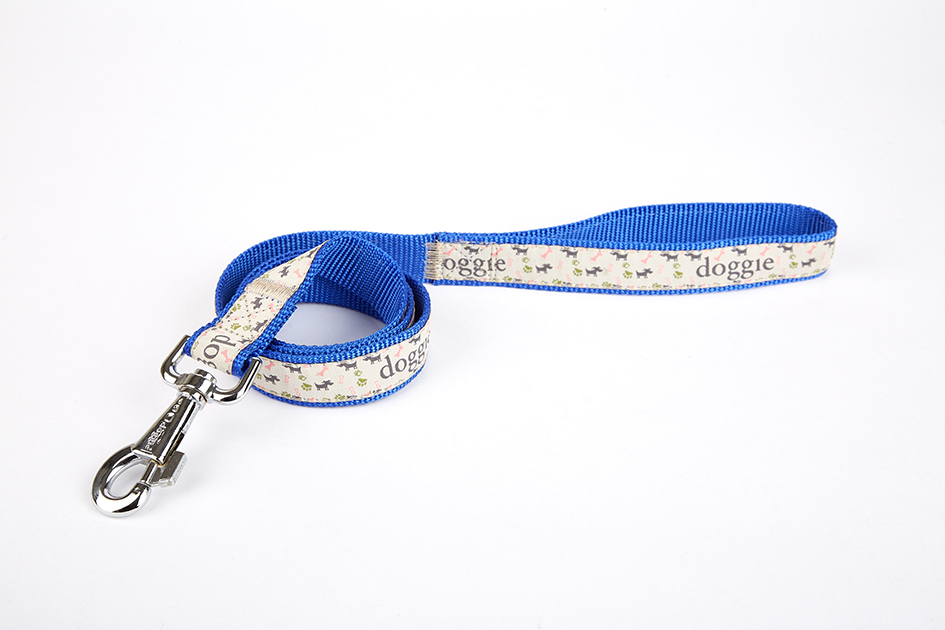 Doggie Desenli Süslü Dokuma Köpek Gezdirme Kayışı El Yapımı 2,5 x 120 cm Mavi