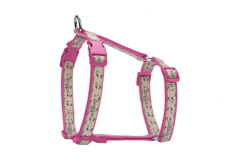 Doggie Desenli Süslü Dokuma Köpek Göğüs Tasması 2,5 x 70-95 cm