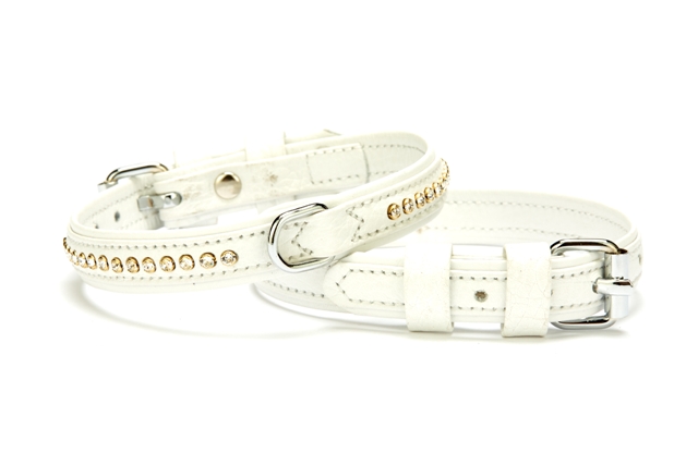 Doggie Flotter Deri Swarovski Kristal Taşlı Köpek Boyun Tasması 1,5 x 24-30 cm Beyaz