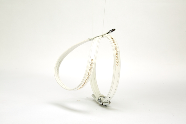 Doggie Flotter Swarovski Taşlı Deri Köpek Göğüs Tasması 1,2 x 29-40 cm Beyaz