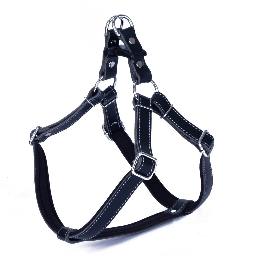 Doggie Gerçek Deriden El Yapımı Ronnin Köpek Göğüs Tasması 2x55-65 cm Large Siyah