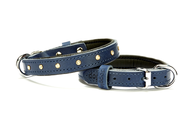 Doggie Konforlu Deri Swarovski Kristal Taşlı Köpek Boyun Tasması 1,5 x 24-30 cm Mavi