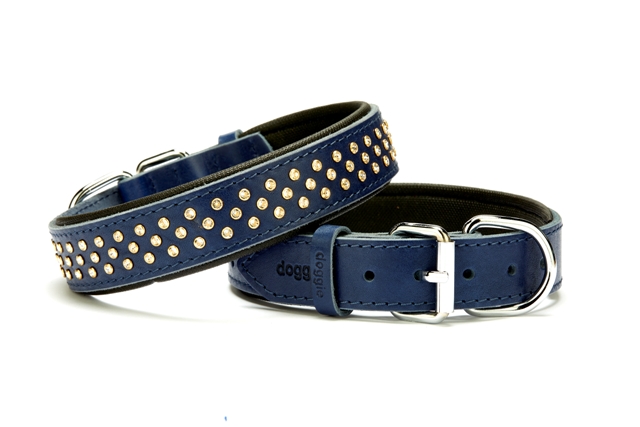 Doggie Konforlu Deri Swarovski Kristal Taşlı Köpek Boyun Tasması 3 x 38-46 cm Mavi