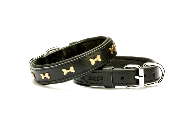 Doggie Metal Kemik Desenli Deri Köpek Tasması 2 cm / 45 cm Siyah