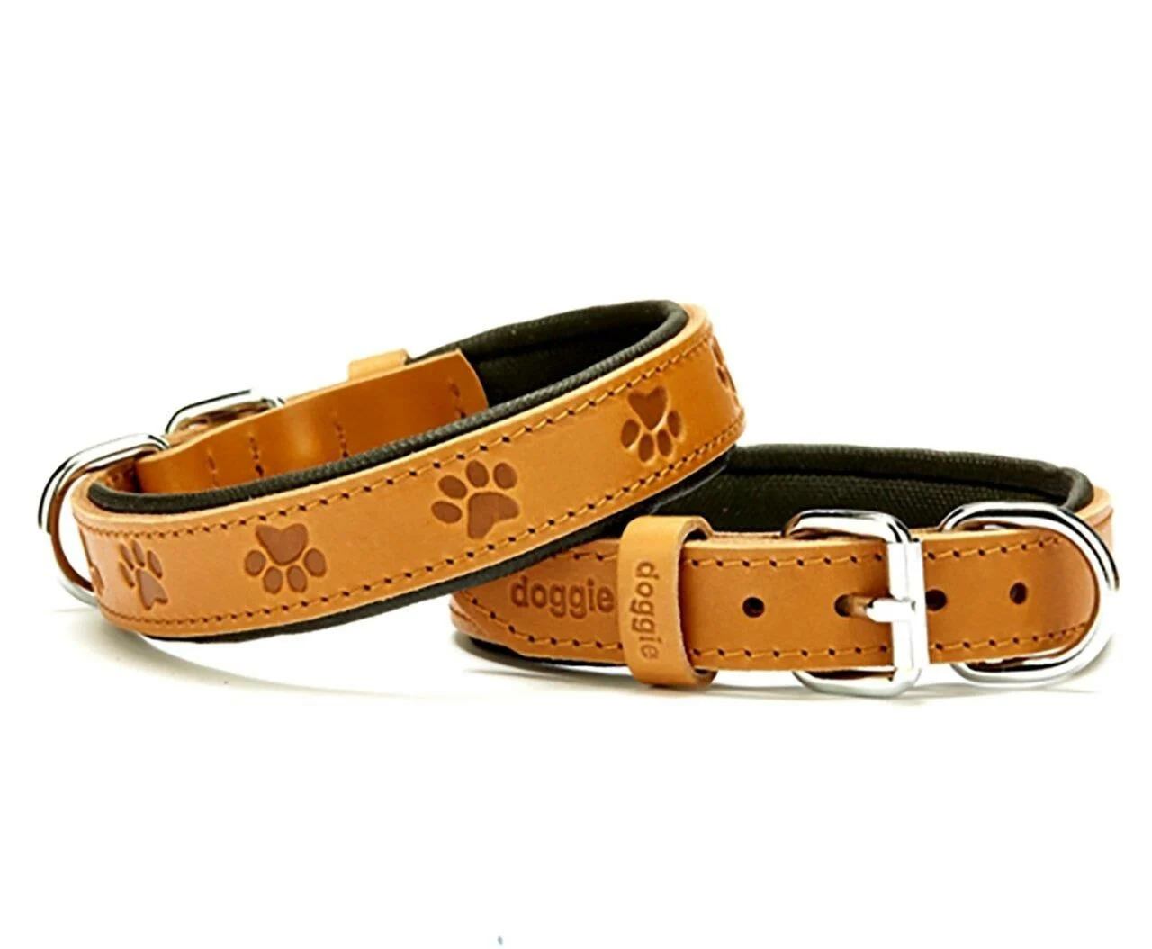 Doggie Pati Desenli Deri Köpek Boyun Tasması 2,5x34-40 cm Kamel
