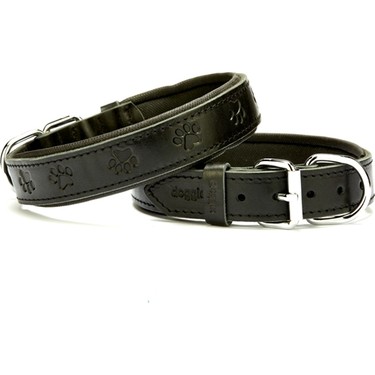 Doggie Pati Desenli Deri Köpek Boyun Tasması 2,5x34-40 cm Siyah