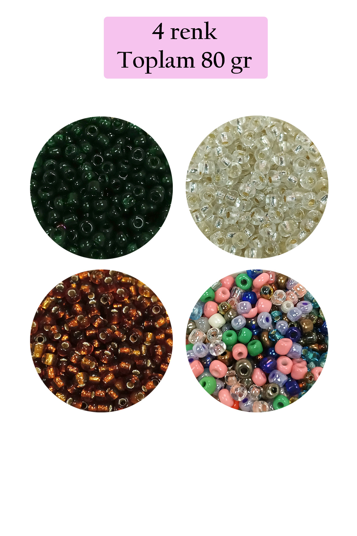 | Dökme Cam Kum Boncuk (8/0) 3 mm - 4 Renk - Toplam 80 Gram - BNC419 Renkler : Şeffaf Koyu Yeşil - Şeffaf Beyaz - Şeffaf Kahve - Çok Renkli Renk ve malzeme testinden geçirilmiş olup , cilt için tammen zararsız malzemelerden imal edilmiştir. İncelemiş olduğunuz kum boncuklar 3 mm çapındadır. incelemiş olduğunuz kum boncukların ismi 8/0 olarak bilinir. 1 paket 3 mm 8/0 kum boncuk 4 Renk toplam 80 gramdır. Dökme kum boncuklar kolye, bileklik, küpe, aksesuar yapımında ve el işi oya ve örgülerde kullanılmaktadır. |
