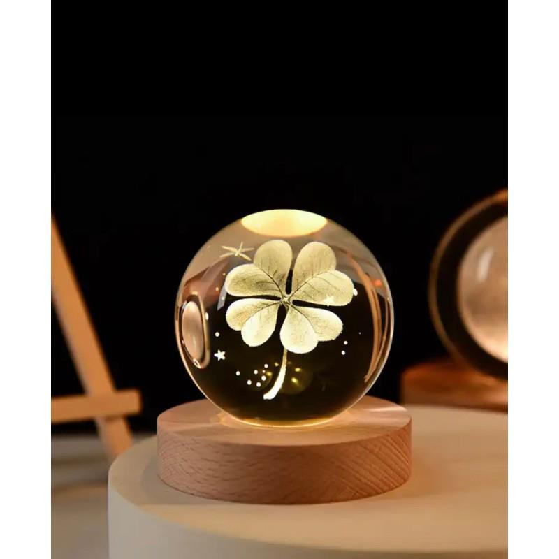Dört Yapraklı Yonca Renk Değiştiren Işıklı Cam Küre 8cm