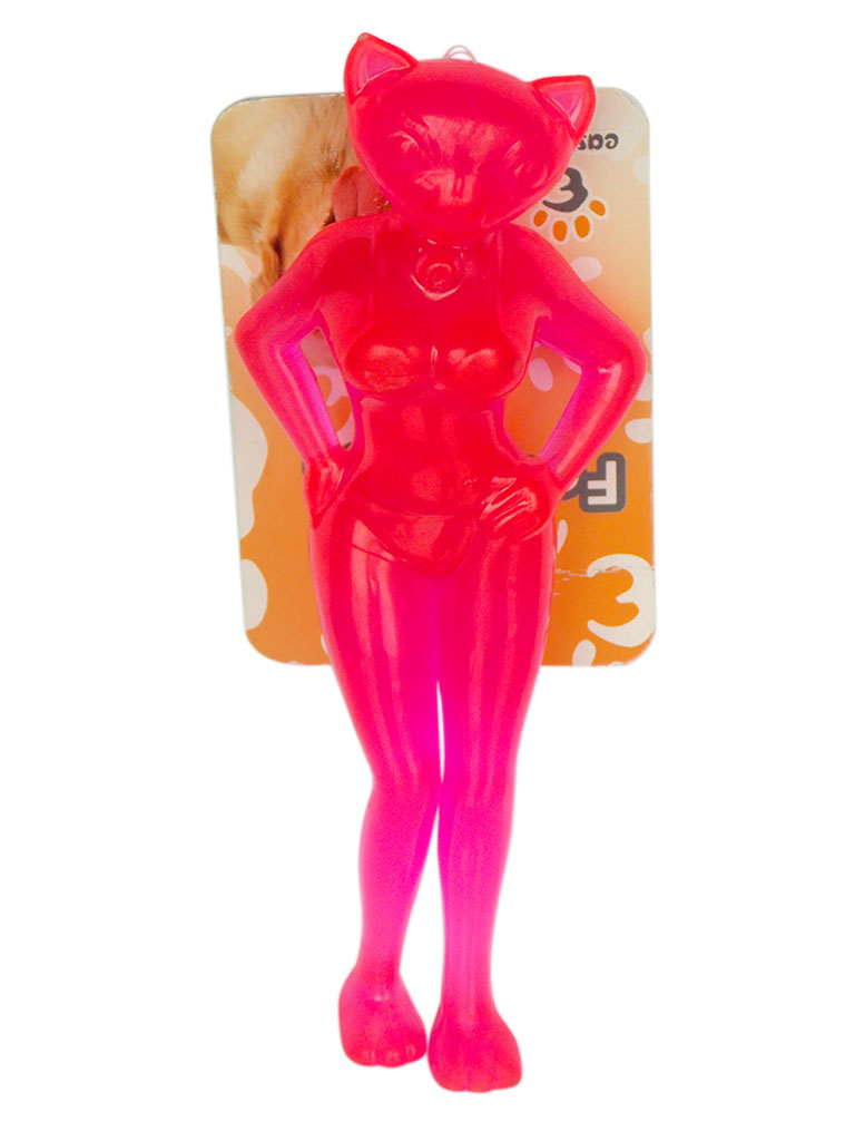 17 X 6 cm ebatlarında yüksek kaliteli sert plastikten üretilmiş kedi kadın şeklinde köpek oyuncağı.