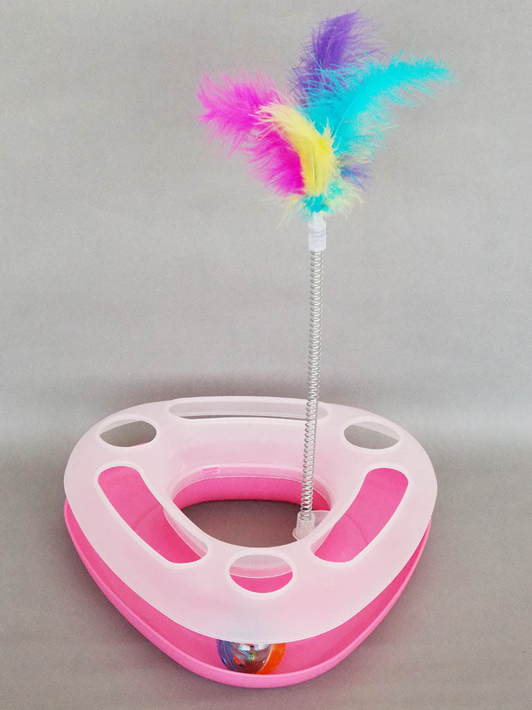 Kedinizin eğlenceli bir vakit geçirmesi için interaktif kedi oyuncağı,oyuncağın taban bölmesinde gizlenmiş çıngıraklı top ve ucunda tüyler bulunan yaylı oyuncak