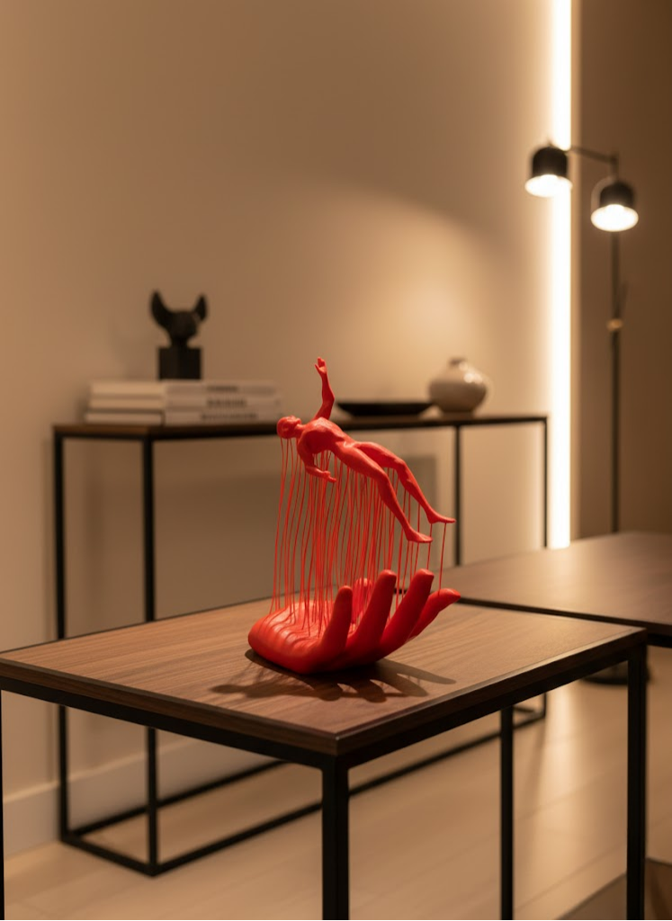 Modern çizgilere sahip kırmızı el formunda insan figürü biblo, soyut ve estetik görünümüyle yaşam alanlarınıza sanatsal bir dokunuş ekler. Raf, kitaplık, TV ünitesi ve konsol üstü kullanım için uygundur. Kompakt 12x18 cm ölçüsü sayesinde farklı alanlarda kolayca konumlandırılabilir. Dekorasyonda fark yaratmak isteyenler için hem şık hem de anlamlı bir tamamlayıcıdır.