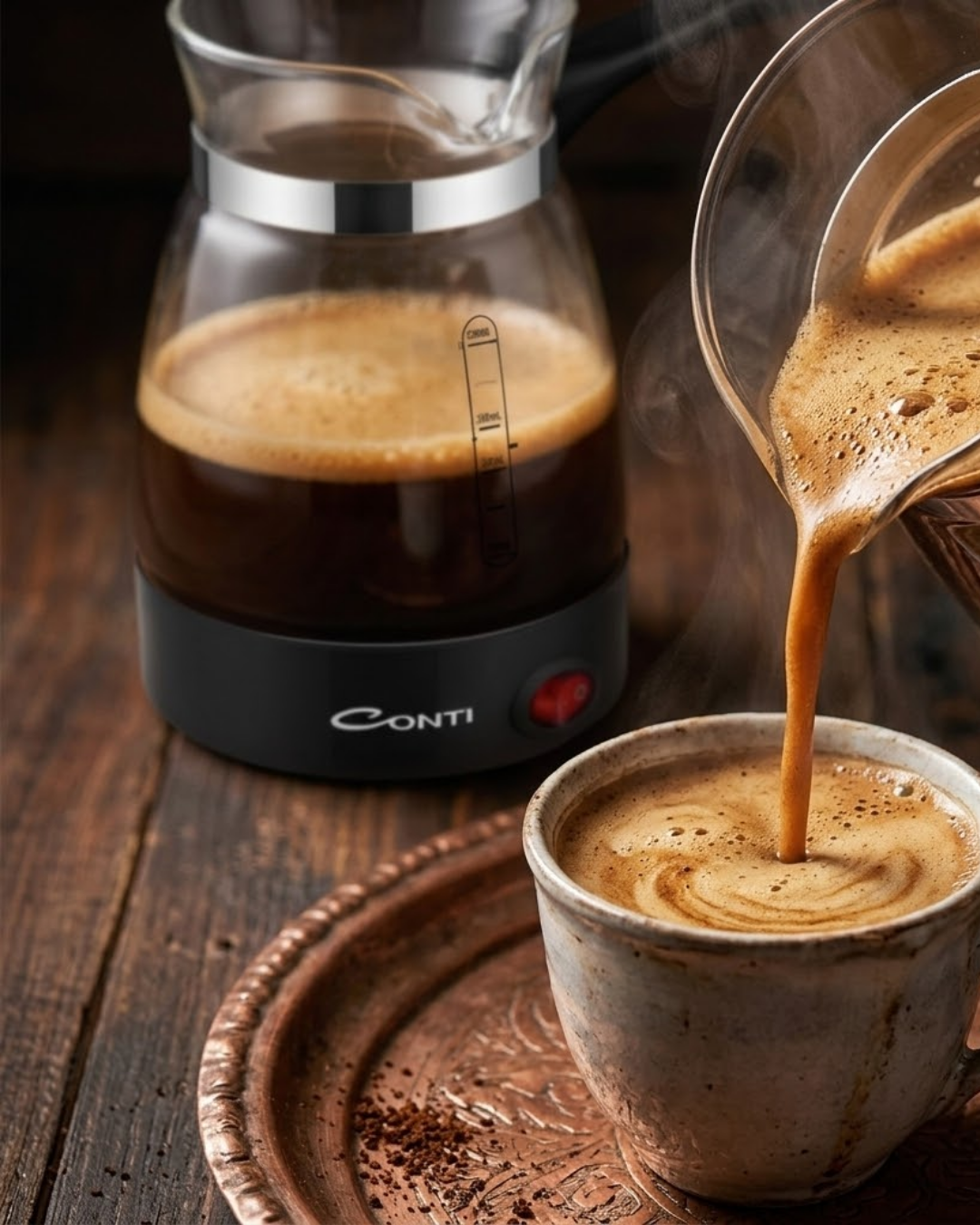 Cam cezveli elektrikli kahve makinesi, Türk kahvesi hazırlamayı daha kolay ve pratik hale getiren modern bir mutfak cihazıdır. Elektrikli çalışma sistemi sayesinde kahve hazırlamak için ocak kullanmaya gerek kalmaz. Bu özellik özellikle hızlı kahve hazırlamak isteyen kullanıcılar için büyük avantaj sağlar.