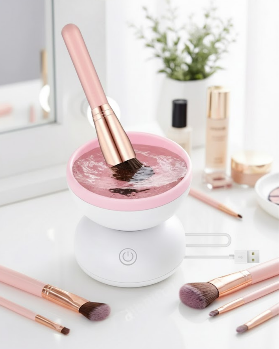 Elektrikli makyaj fırçası temizleyici, kozmetik fırçalarının hijyenik, hızlı ve zahmetsiz şekilde temizlenmesini sağlamak amacıyla geliştirilmiş pratik bir güzellik cihazıdır. Günlük makyaj rutininde kullanılan fırçalar zamanla makyaj kalıntıları, yağ ve kir birikimine maruz kalır. Bu durum hem makyaj performansını düşürür hem de cilt sağlığı açısından risk oluşturabilir. Bu otomatik fırça temizleme makinesi, fırçaların derinlemesine temizlenmesine yardımcı olarak hijyenik kullanım sunar.