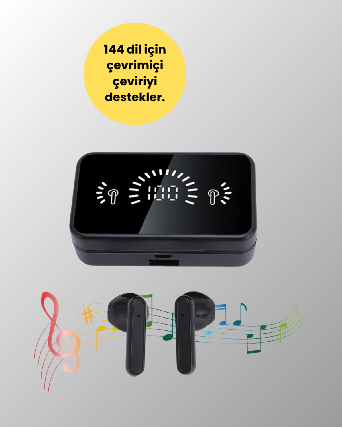 Bu çift dijital göstergeli Bluetooth kulaklık, Bluetooth 5.0 teknolojisi ile 10 metreye kadar güçlü ve kesintisiz bağlantı sağlar. Gelişmiş gürültü önleme (Noise Cancelling) teknolojisi sayesinde konuşmalarda sesiniz karşı tarafa net bir şekilde iletilir.Güçlendirilmiş bass özelliği, müzikte derin ve etkileyici sesler sunarak her notayı hissettirir. 50 mAh kulaklık bataryası ve 2000 mAh şarj kutusu sayesinde 5-6 güne kadar kesintisiz kullanım sağlar. Ayrıca şarj kutusu, acil durumlarda telefonunuzu da şarj edebilme özelliğiyle fark yaratır.IPX5 su geçirmez yapısı sayesinde spor yaparken, yürüyüşte veya yağmurlu havalarda bile güvenle kullanabilirsiniz.