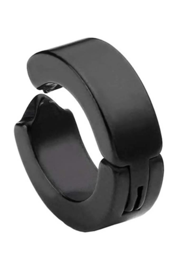 Erkek Küpesi - 1 Adet Siyah Çelik Kıstırmalı Küpe Paslanmaz Atmaz Çelik Siyah Küpe