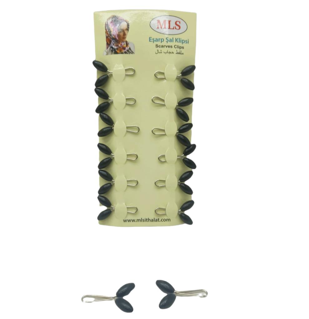 Eşarp Siyah 12 Parça Kart Başörtü - Şal Klipsi