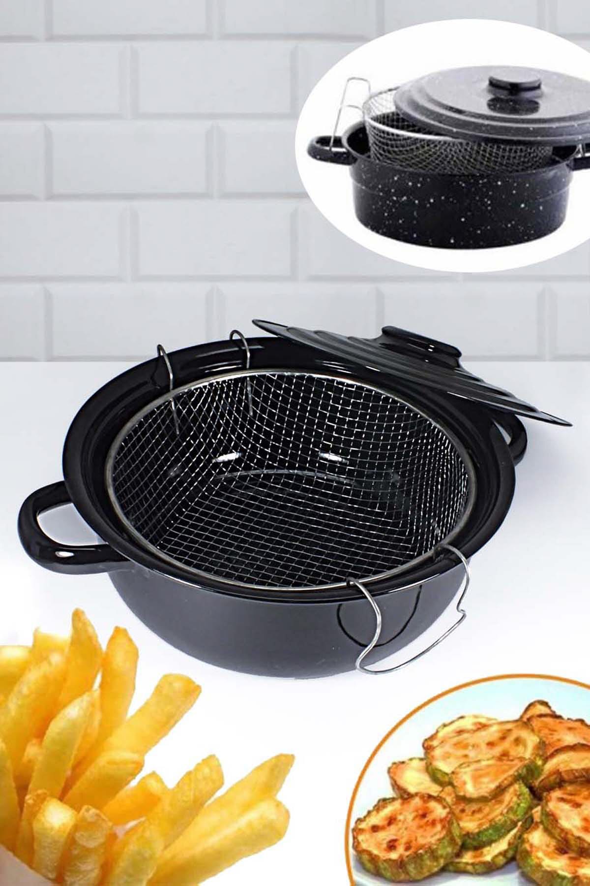 Yanmaz ve yapışmaz Emaye Fritöz Kızartma Tenceresi ile kolay ve pratik bir şekilde leziz kızartmalar hazırlayabilirsiniz.