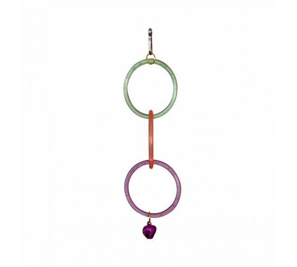 4,5 cm çapında 3 adet halkadan oluşan toplamda 14 cm uzunluğunda kuş oyuncağıdır.