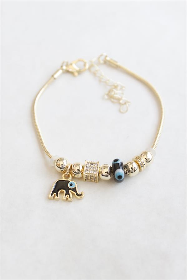 Filli Charmlı Cam Nazarlı Bileklik - Siyah