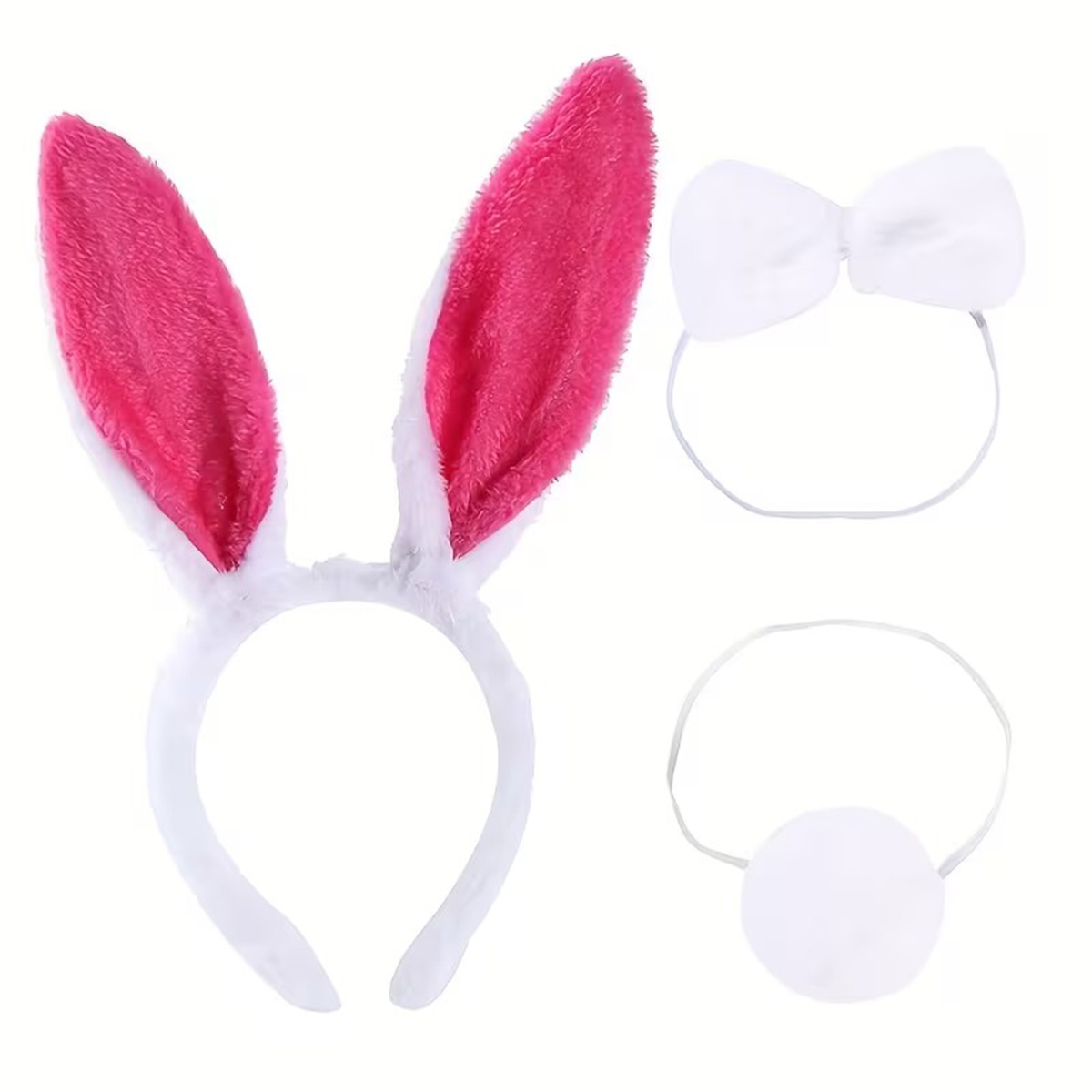 Fuşya Pembe Tavşan Kulak Papyon Kuyruk 3'lü Parti Seti