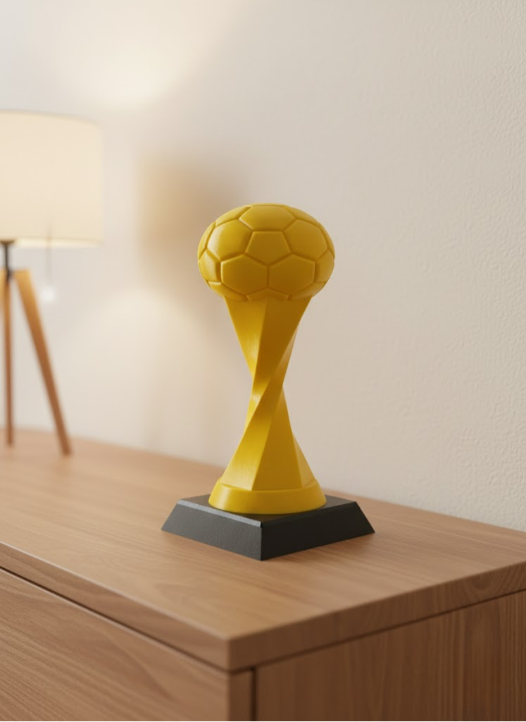 Bu özel tasarım Toplu Kupa Sarı 21 cm biblo, minimal çizgileri ve modern görünümüyle dekorasyon alanında fark yaratmak isteyenlere hitap eder. Futbol topu şeklindeki üst bölümü, güçlü gövde tasarımıyla birleşerek dinamik bir estetik oluşturur. Dayanıklı malzemeden 3D baskı teknolojisi ile üretilen bu ürün, renk canlılığını uzun süre korur. Masaüstlerinde, raflarda, kitaplıklarda veya vitrinlerde dekoratif bir obje olarak çok şık bir görünüm sergiler. Spor temalı partiler, etkinlikler veya turnuvalar için sembolik ödül olarak da kullanılabilir. Kolay temizlenebilir yüzeye sahiptir. Spor seven her yaş grubuna hitap eden bu tasarım, modern dekor stiline mükemmel uyum sağlar. Hediye alternatifi olarak da oldukça etkileyicidir.