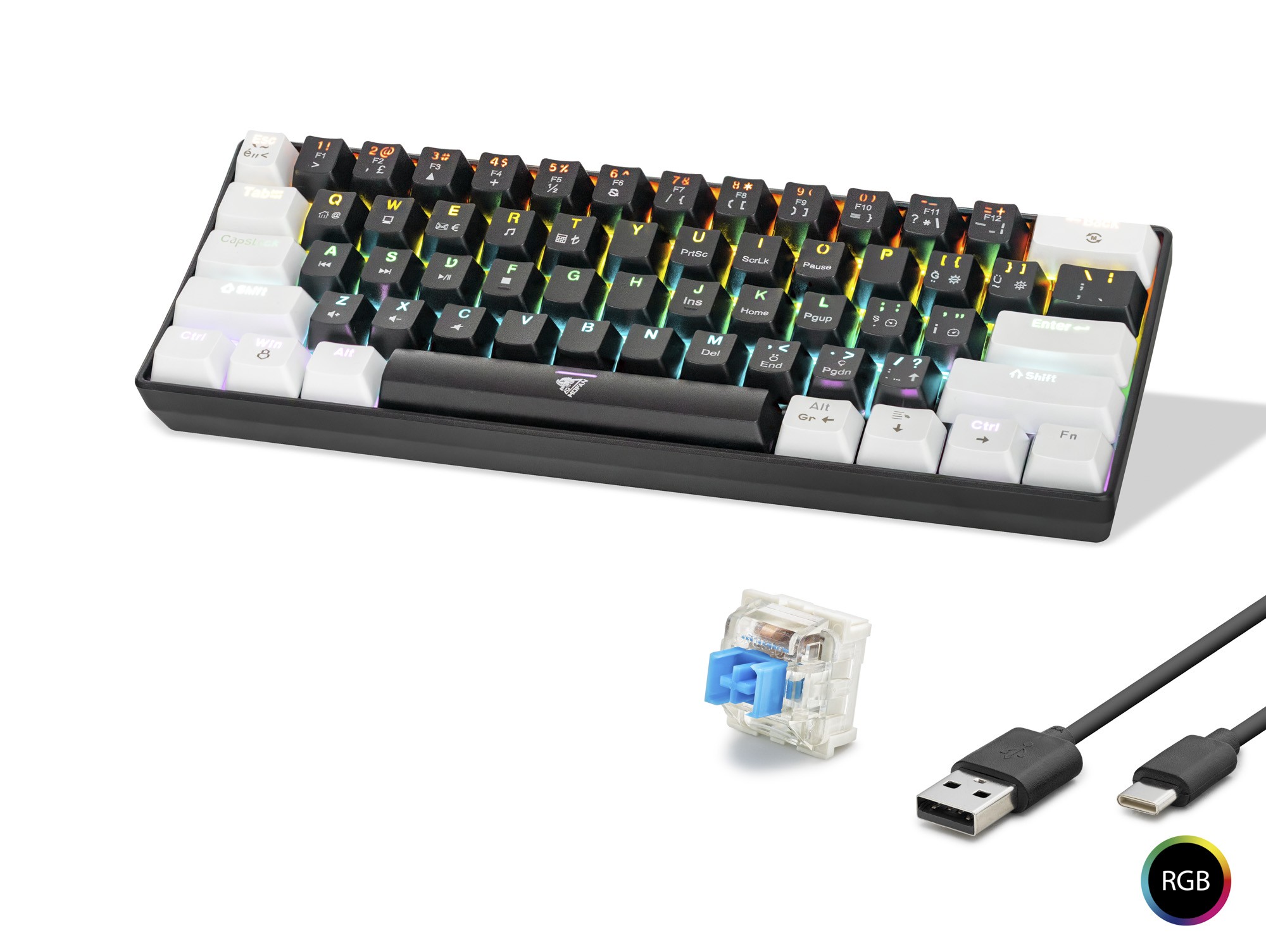 GAMING MEKANİK RAINBOW KLAVYE BLUE SWITCH - SİYAH BEYAZ (61 TUŞ)