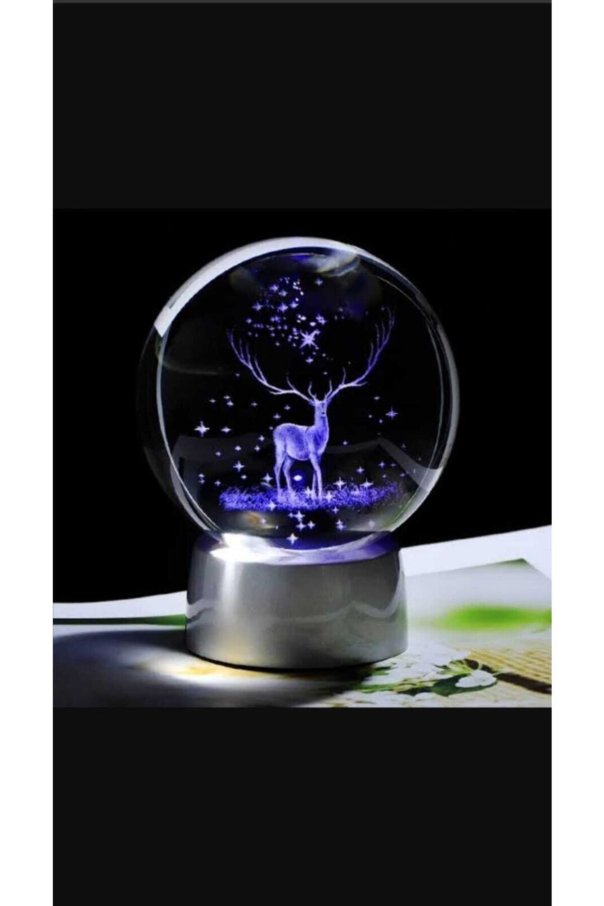 Geyik Temalı Işıklı Renk Değiştiren Dekoratif Cam Küre