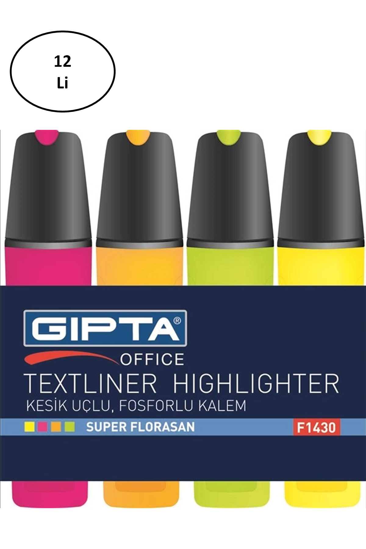 | Gıpta Fosforlu Kalem 5Mm Kesik Uç Mavi 12'li - Ürün Kodu : GIP.4-F140600-5001 |