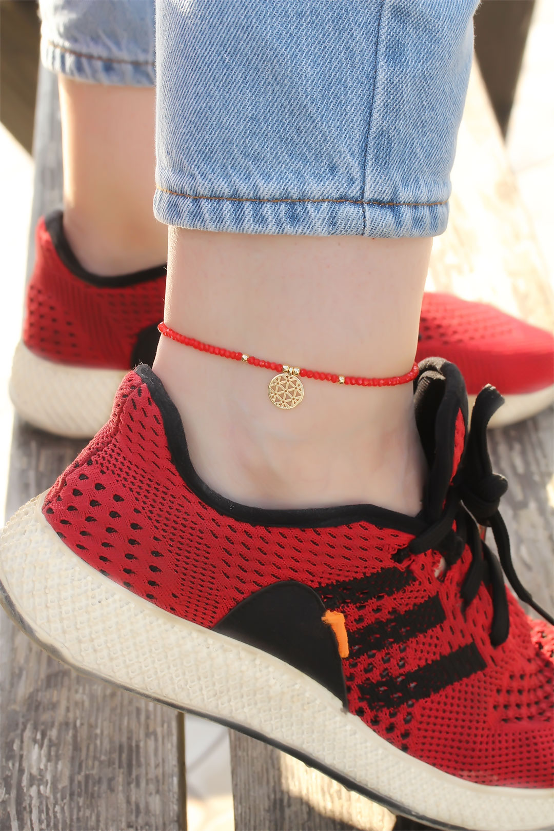 Gold Metal Aksesuarlı Kırmızı Boncuk Detaylı Halhal - TJ-HH1229