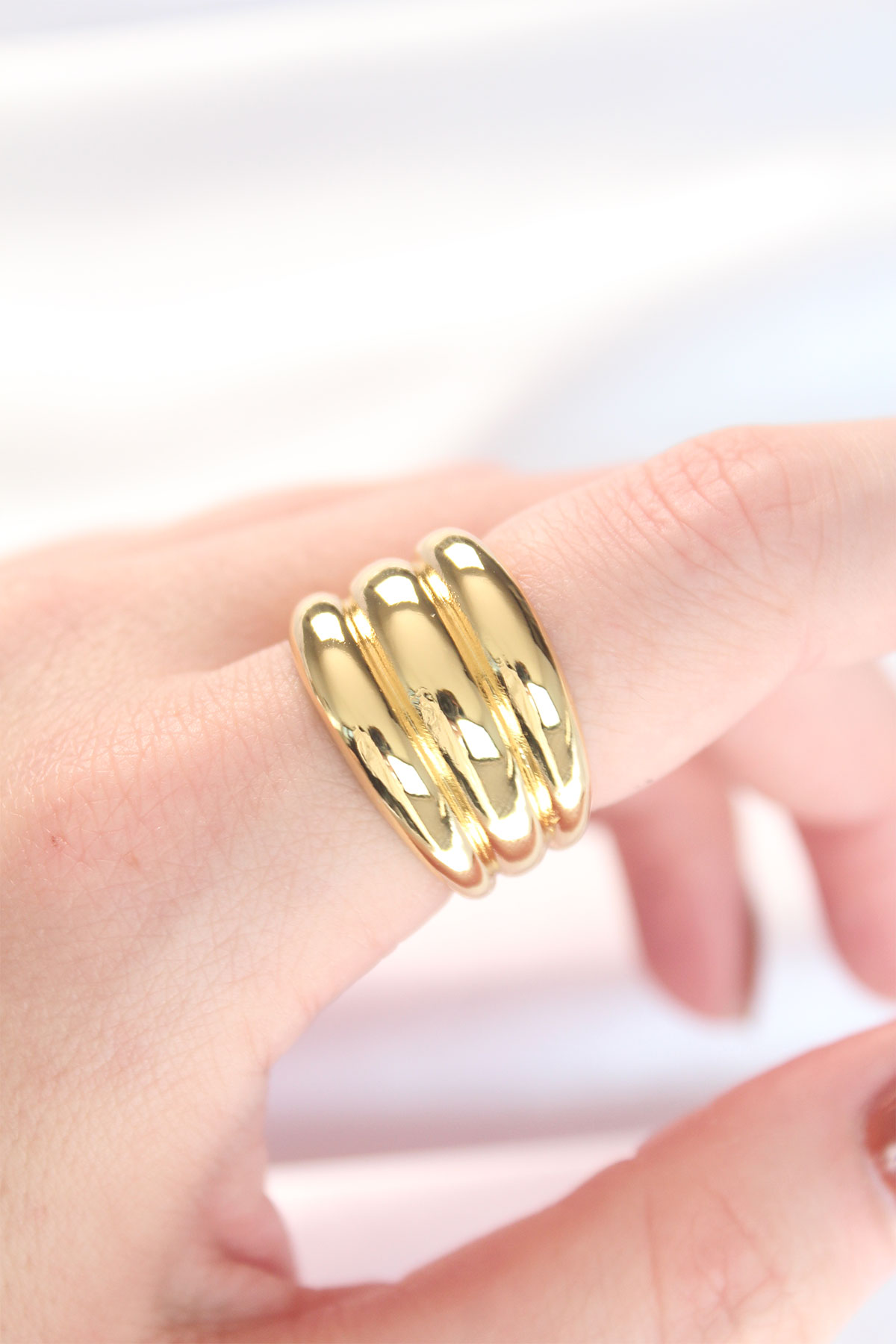Gold Renk Ayarlanabilir Çizgili Bombe Yüzük - TJ-BYK3119