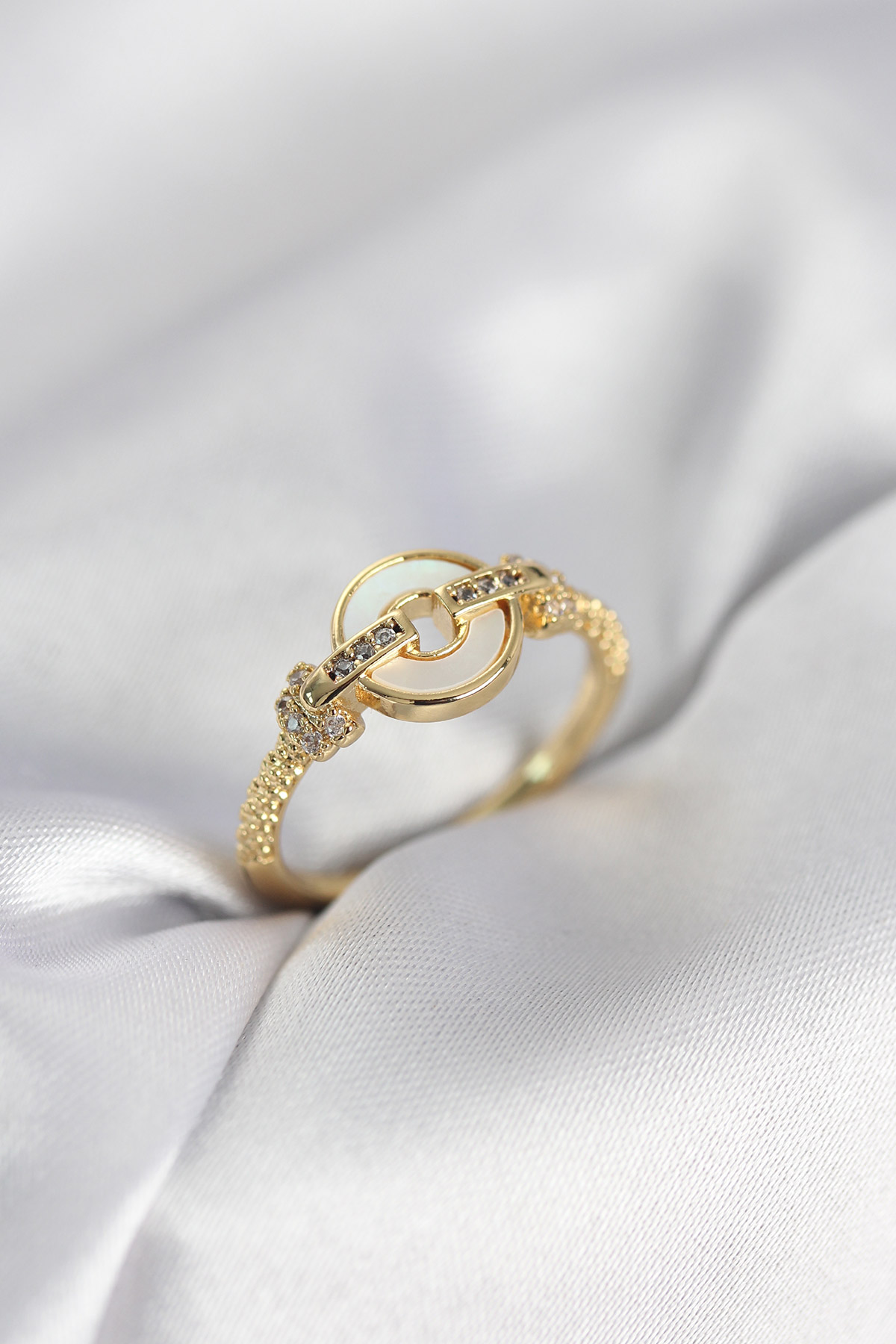 Gold Renk Daire Form Sedef ve Zirkon Taşlı Kadın Yüzük - TJ-BYK4003