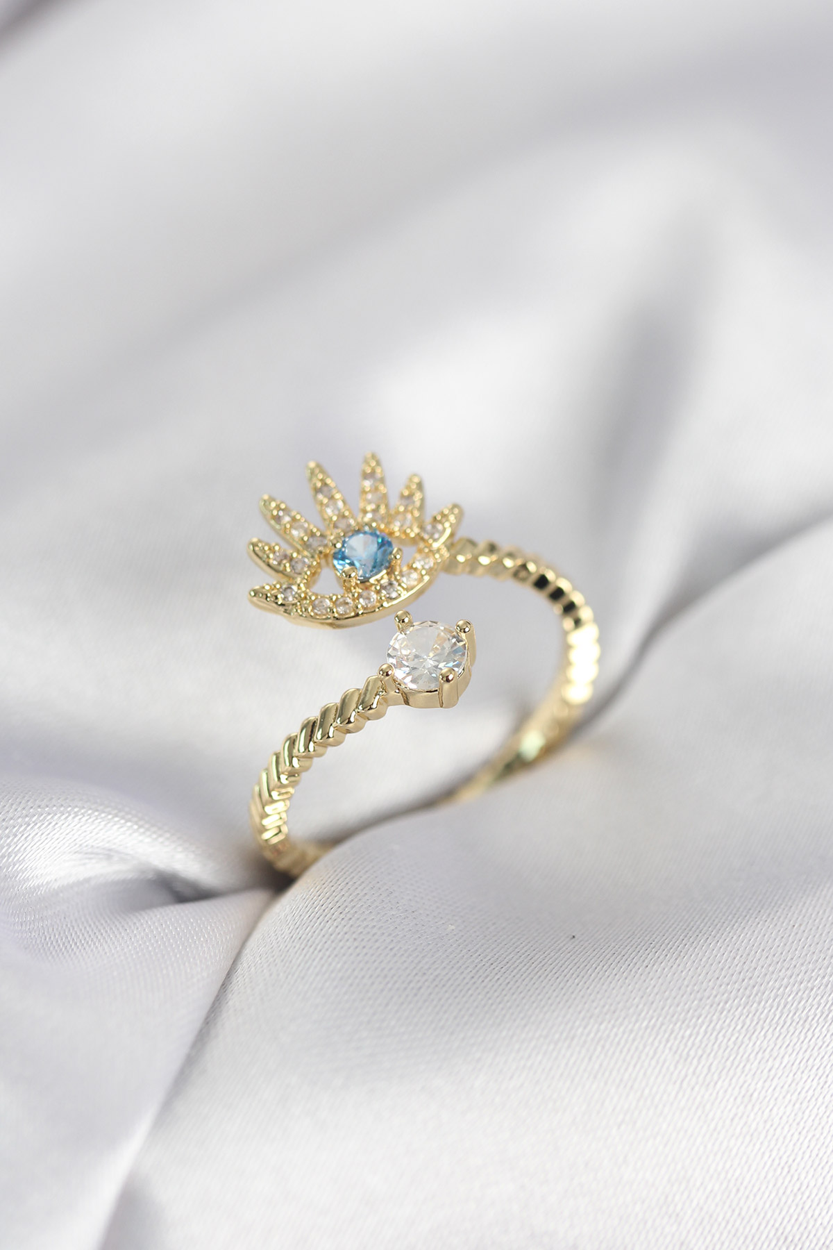 Gold Renk Göz Model Zirkon Taşlı Kadın Yüzük - TJ-BYK4074