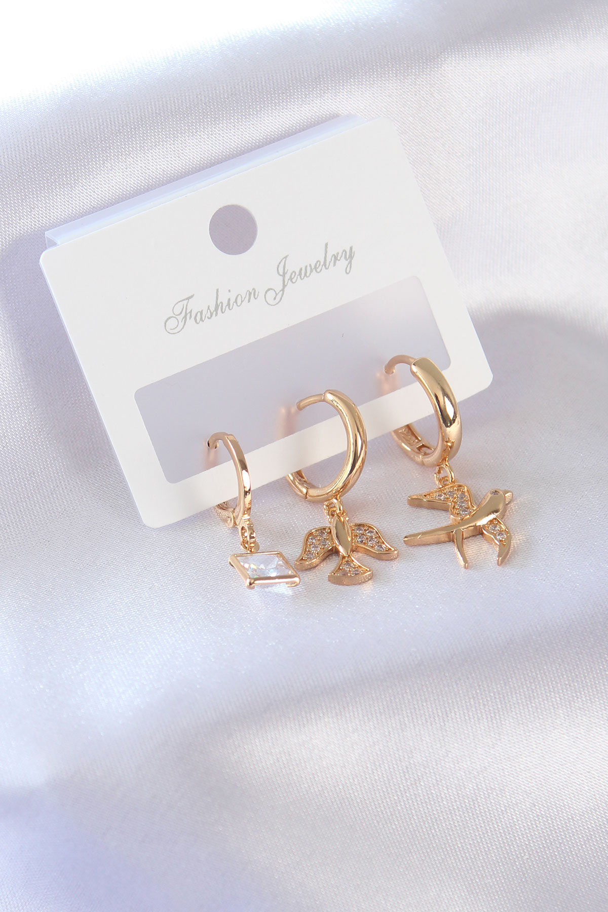Gold Renk Kuş Figür Zirkon Taşlı Kadın Küpe - TJ-BKP7375