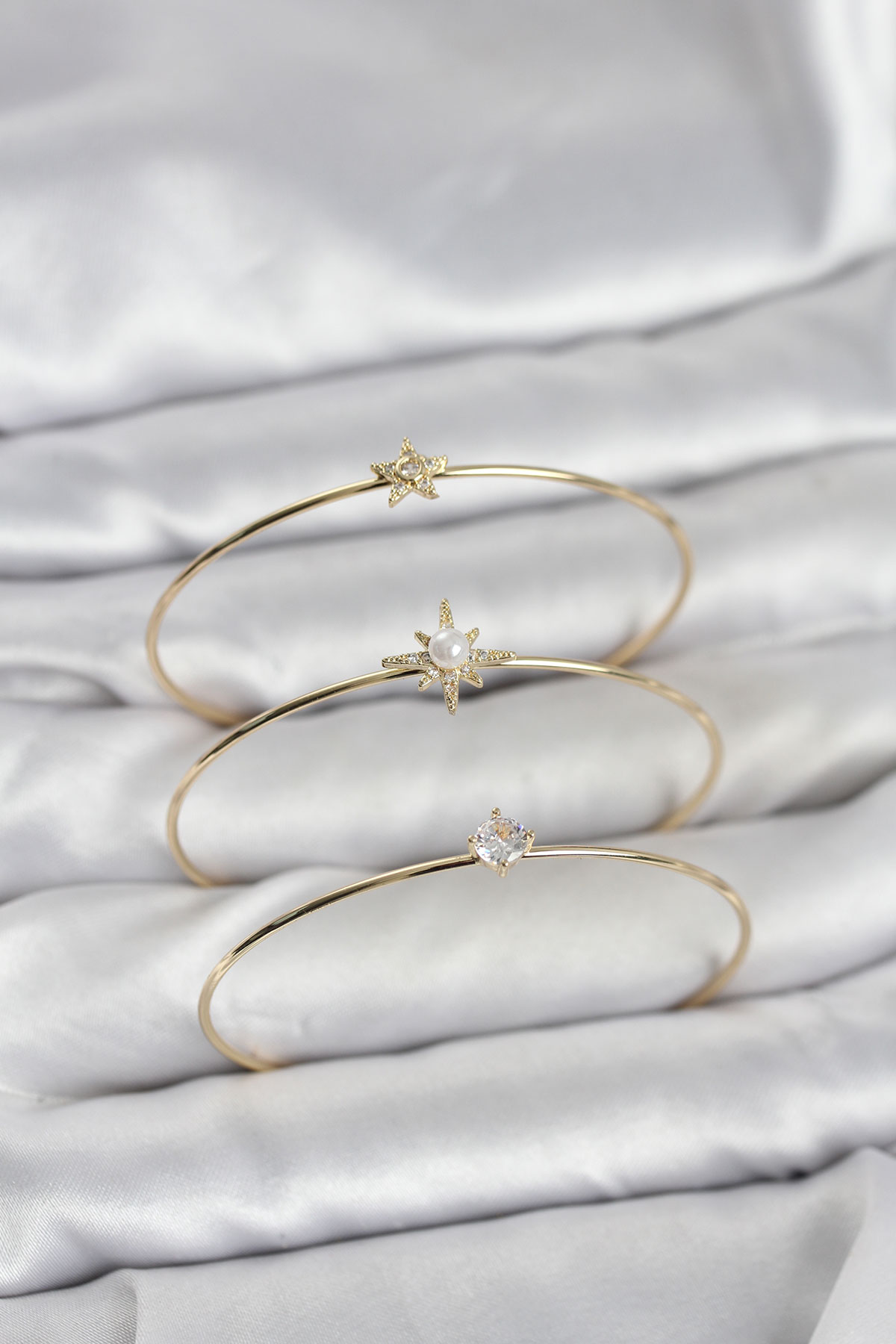 Gold Renk Kutup Yıldızı Model Zirkon Taşlı 3'lü Kadın Bileklik Kombini - TJ-BB8347