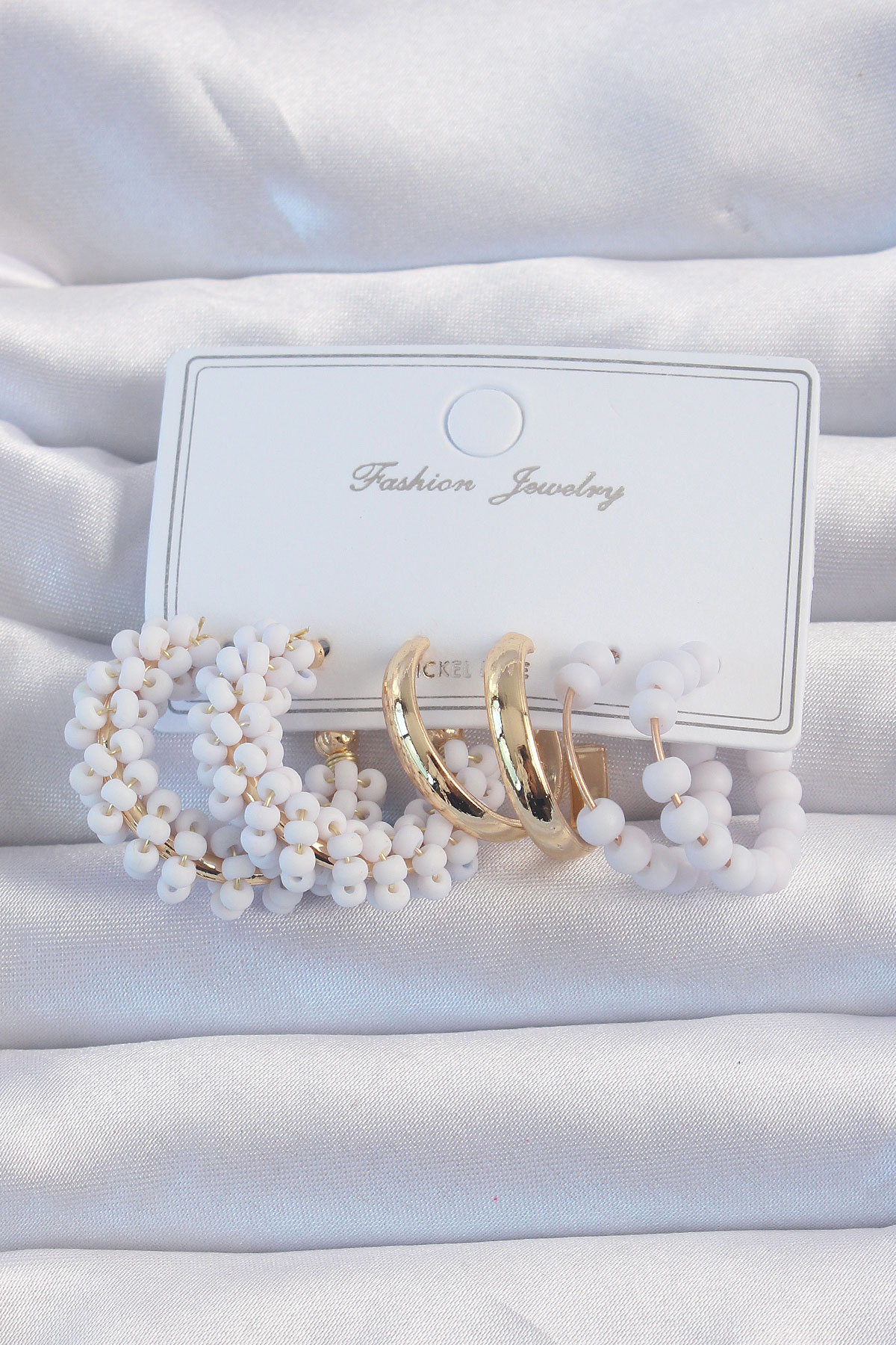 Gold Renk Lila Boncuklu Halka Küpe Seti - TJ-BKP9192