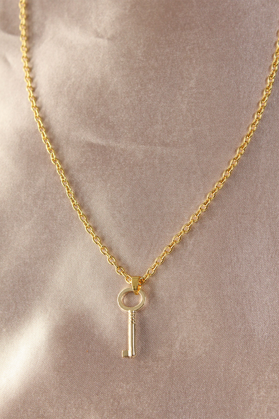 Gold Renk Metal Anahtar Detay Kadın Kolye - TJ-BKO6032