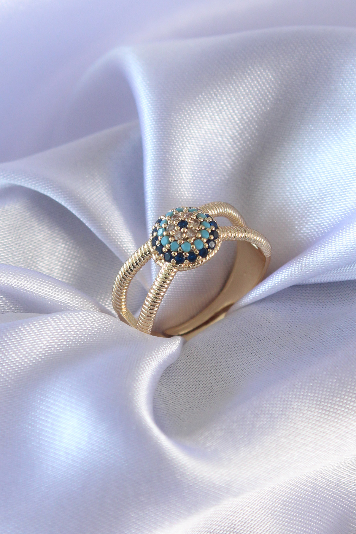 Gold Renk Nazar Boncuk Model Kadın Yüzük - TJ-BYK2568