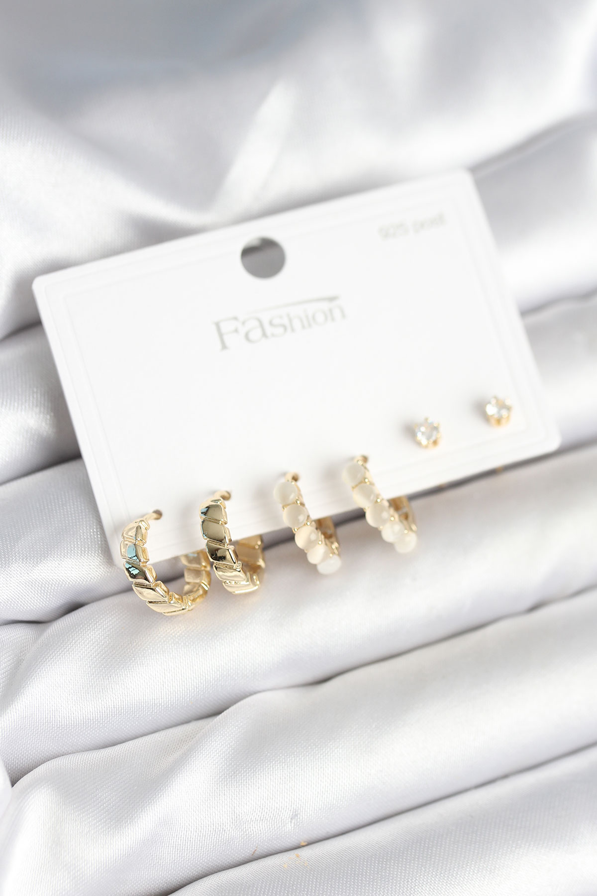 Gold Renk Pirinç Halka 925 Ayar Gümüş Çivili Kadın Küpe Seti - TJ-BKP11272