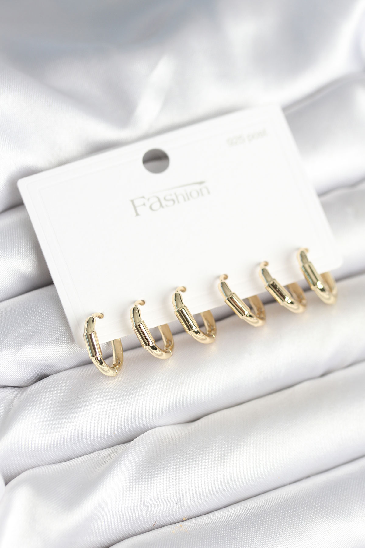 Gold Renk Pirinç Halka Model 925 Ayar Gümüş Çivili Kadın Küpe Seti - TJ-BKP11263