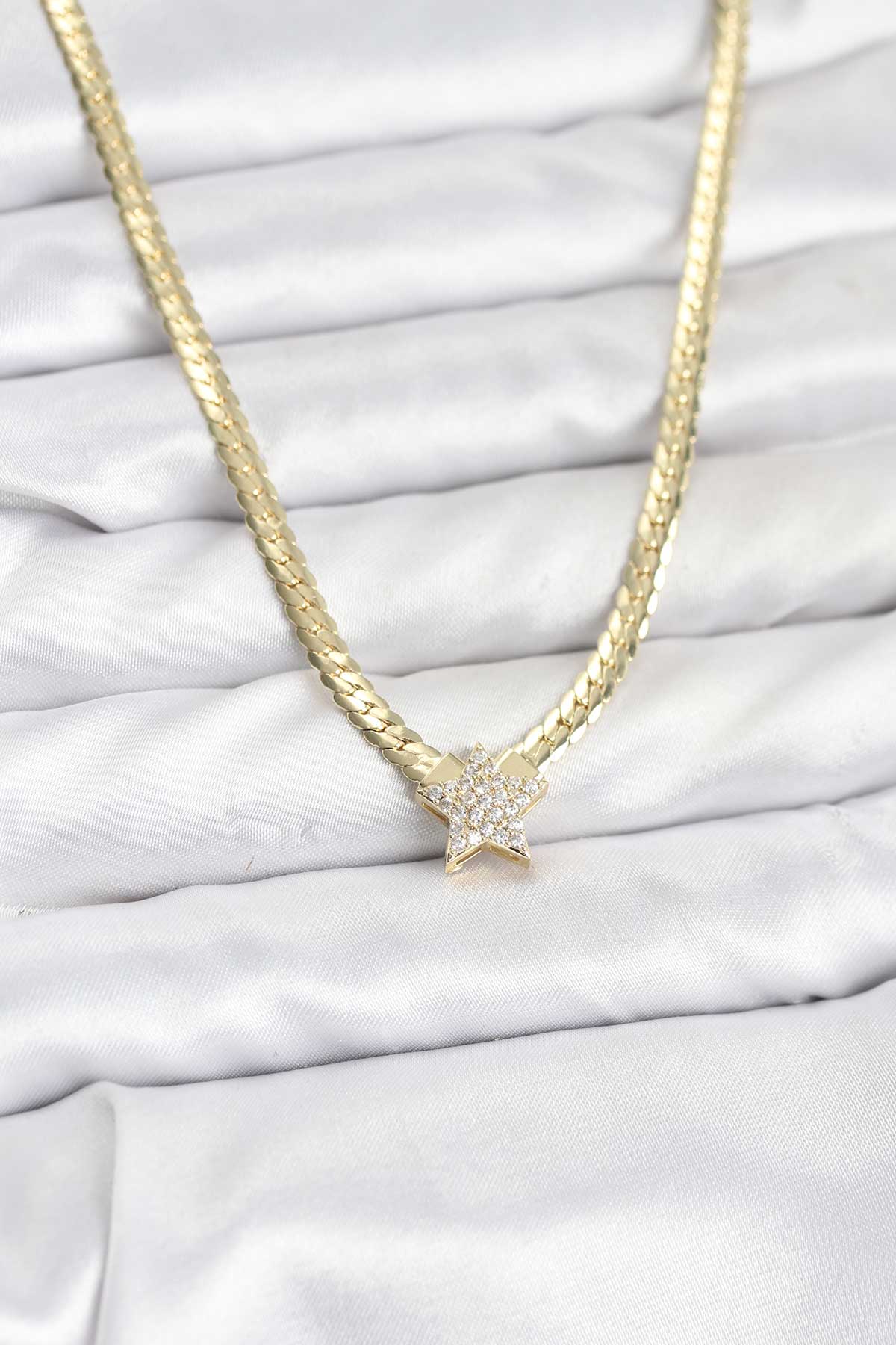 Gold Renk Pirinç Yıldız Zirkon Taşlı Kadın Kolye - TJ-BKO10793