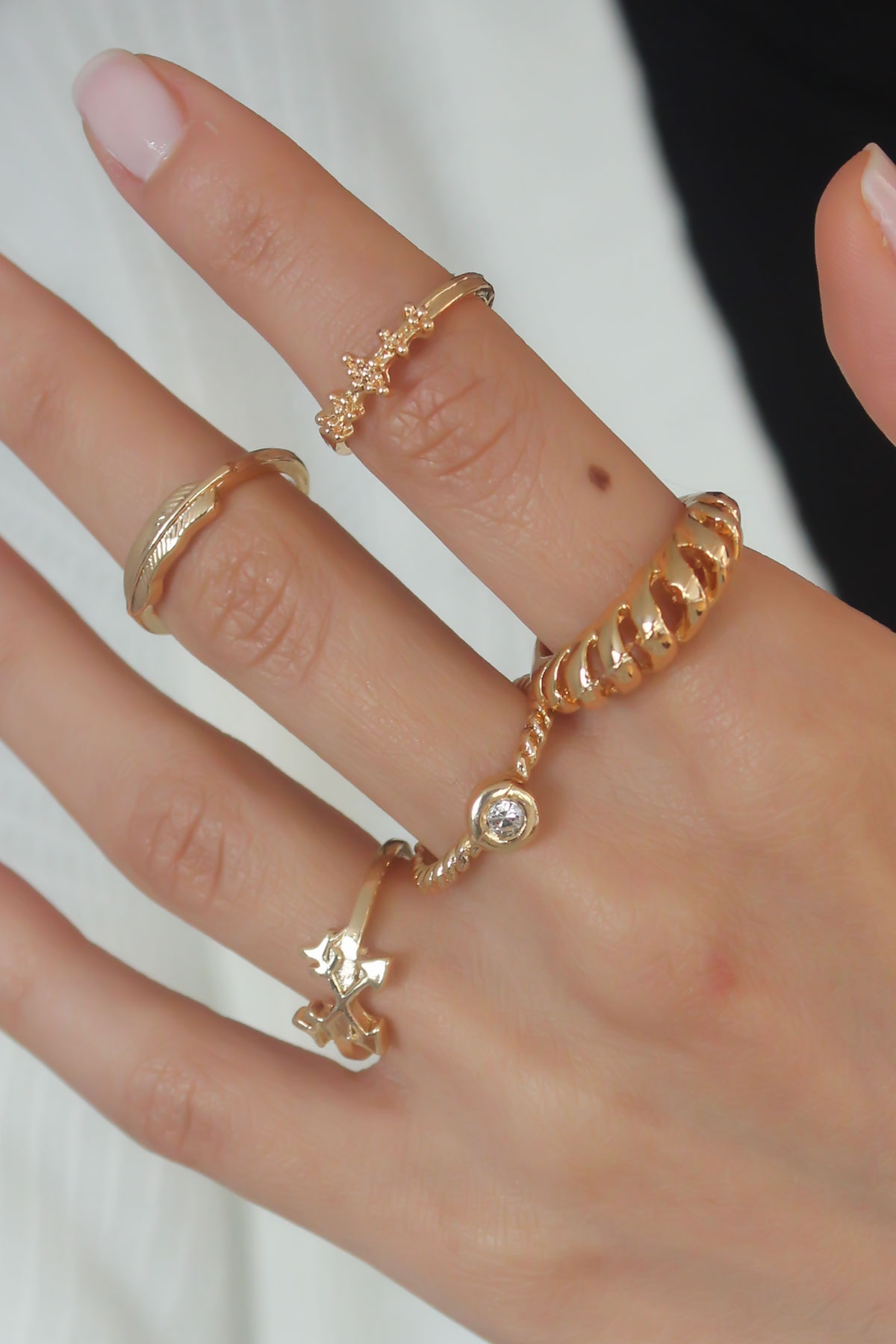 Gold Renk Sarmal Zirkon Taş Detay Kadın Yüzük Kombini - TJ-BYK2452