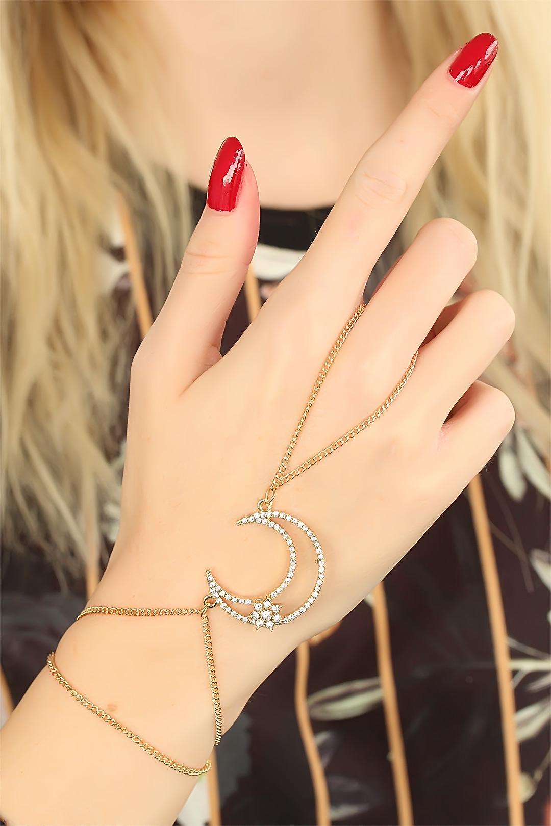 Gold Renk Zirkon Taşlı Ay Tasarım Şahmeran Bileklik - TJ-SN469