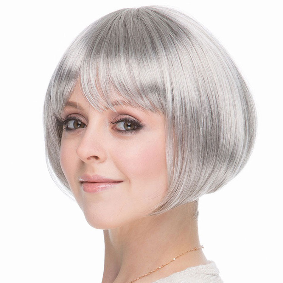 Gri Gümüş Renk Düz Kesim Astarlı Küt Parti Peruk - Tarzınızı Yükseltin!