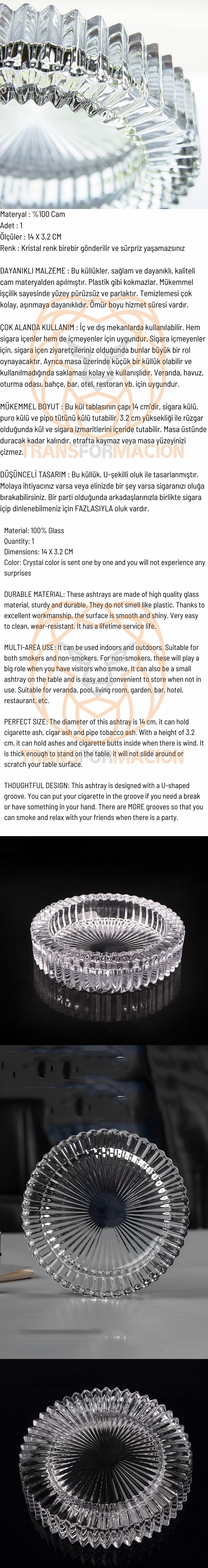 MÜKEMMEL BOYUT : Bu kül tablasının çapı 14 cm'dir, sigara külü, puro külü ve pipo tütünü külü tutabilir. 3.2 cm yüksekliği ile rüzgar olduğunda kül ve sigara izmaritlerini içeride tutabilir. Masa üstünde duracak kadar kalındır, etrafta kaymaz veya masa yüzeyinizi çizmez.