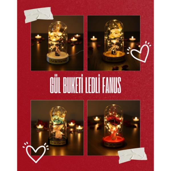 Gül Buketi Ledli Fanus