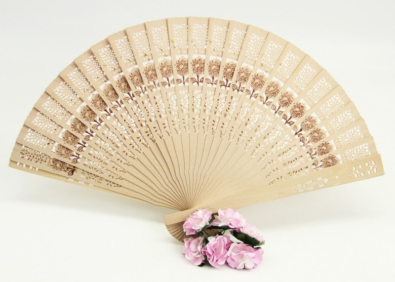 Gül Desenli Ahşap Yelpaze Söz Nişan Düğün Kına Yelpaze